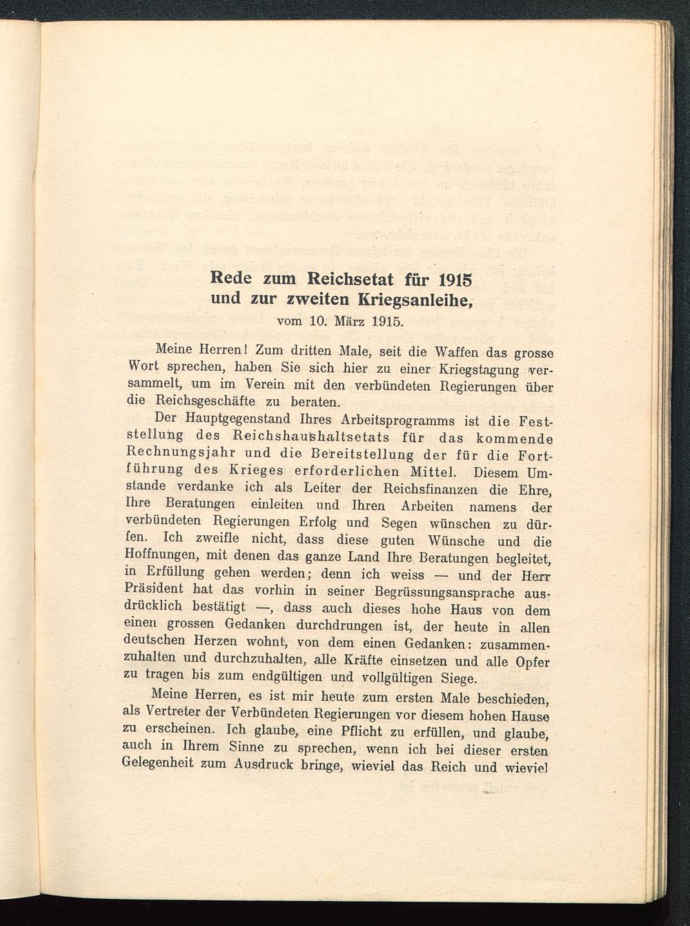 Rede zum Reichsetat für 1915und zur zweiten Kriegsanleihe,