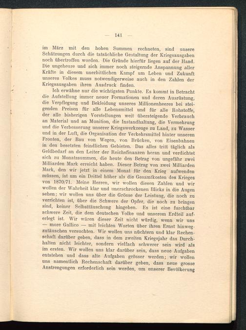 im März mit den hohen Summen rechneten, sind unsereSchätzungen durch die tatsächliche Gestaltung der Kriegsausgabennoch übertroffen worden. Die Gründe hierfür liegen auf der Hand.Die ungeheure und sich immer noch steigernde Anspannung allerKräfte in diesem unerbittlichen Kampf um Leben und Zukunftunseres Volkes muss notwendigerweise auch in den Zahlen derKriegsausgaben ihren Ausdruck finden.