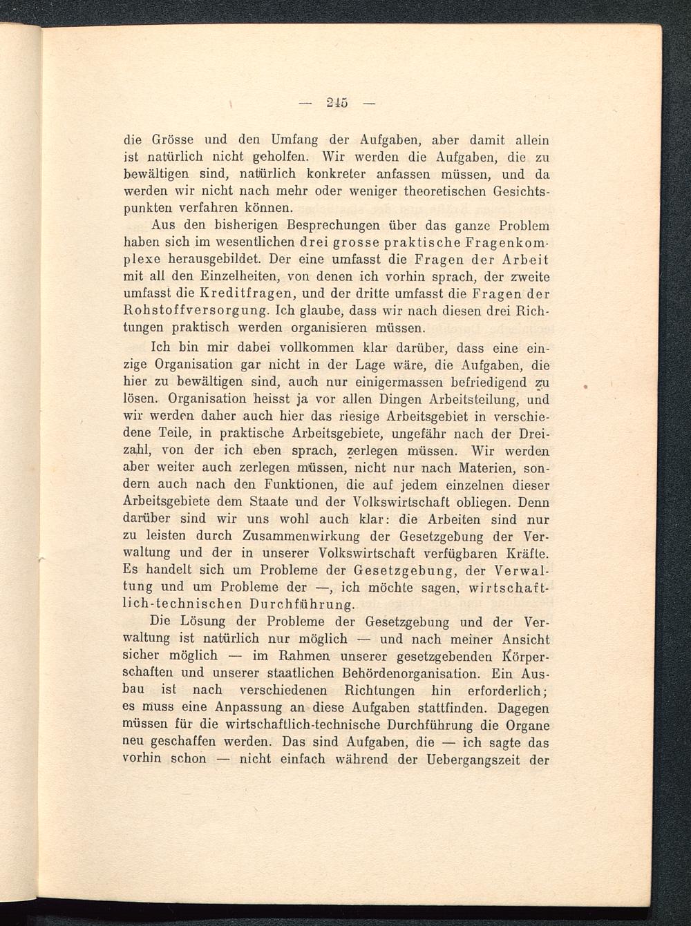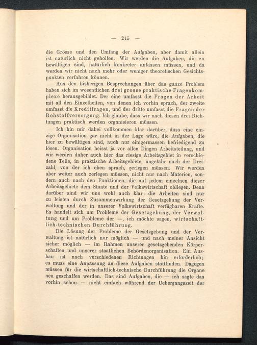 Aus den bisherigen Besprechungen über das ganze Problemhaben sich im wesentlichen drei grosse praktische Fragenkom-plexe herausgebildet. Der eine umfasst die Fragen der Arbeitmit all den Einzelheiten, von denen ich vorhin sprach, der zweiteumfasst die Kreditfragen, und der dritte umfasst die Fragen derRohstoffversorgung. Ich glaube, dass wir nach diesen drei Rich-tungen praktisch werden organisieren müssen.