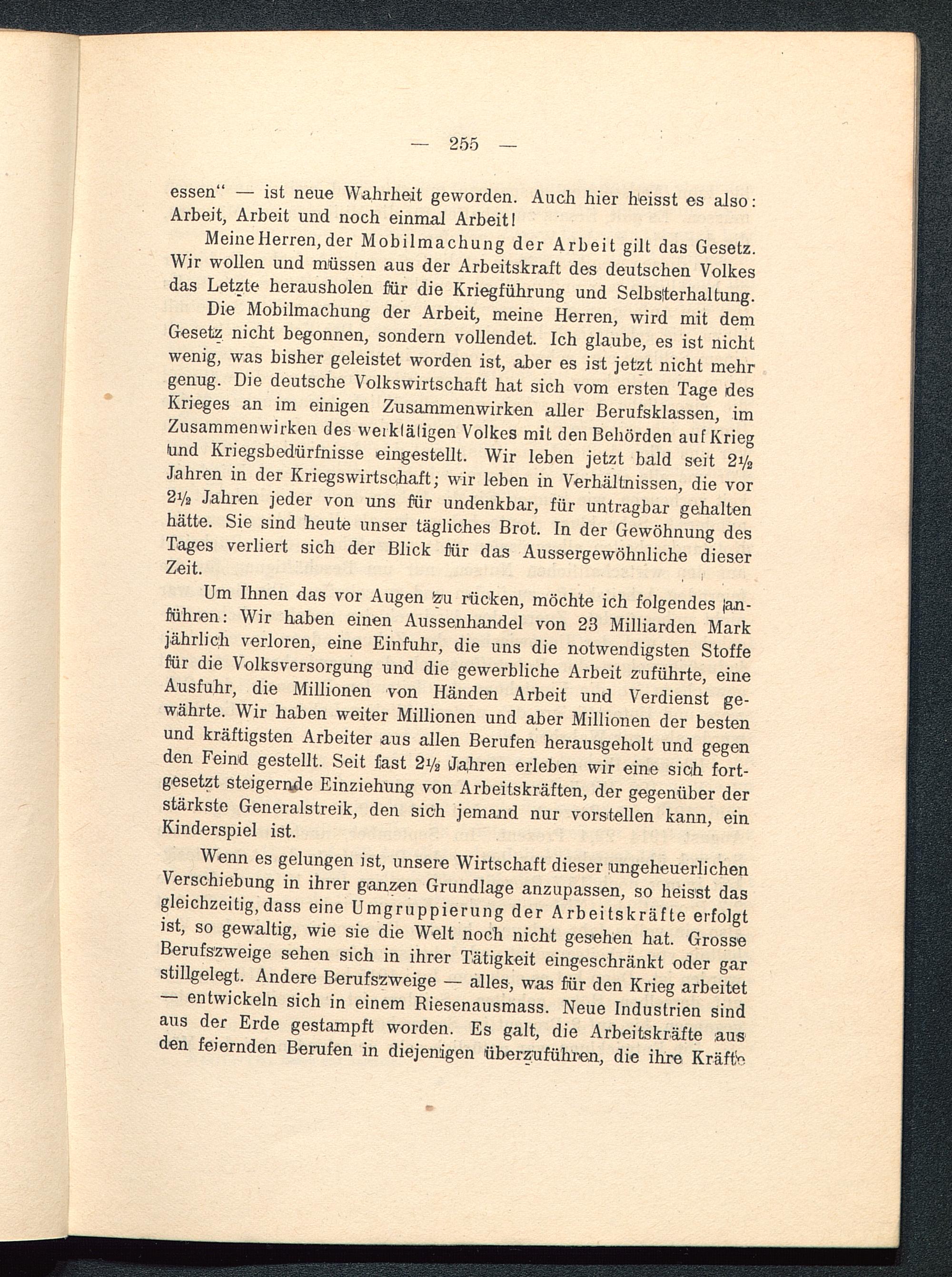 Meine Herren, der Mobilmachung der Arbeit gilt das Gesetz.Wir wollen und müssen aus der Arbeitskraft des deutschen Volkesdas Letzte herausholen für die Kriegführung und Selbslterhaltung.