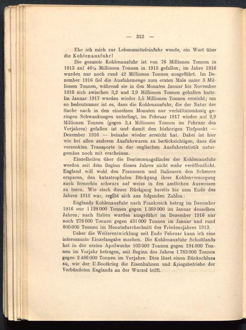 Ehe ich mich zur Lebensmitteleinfuhr wende, ein Wort überdie KohlenausfuhrI