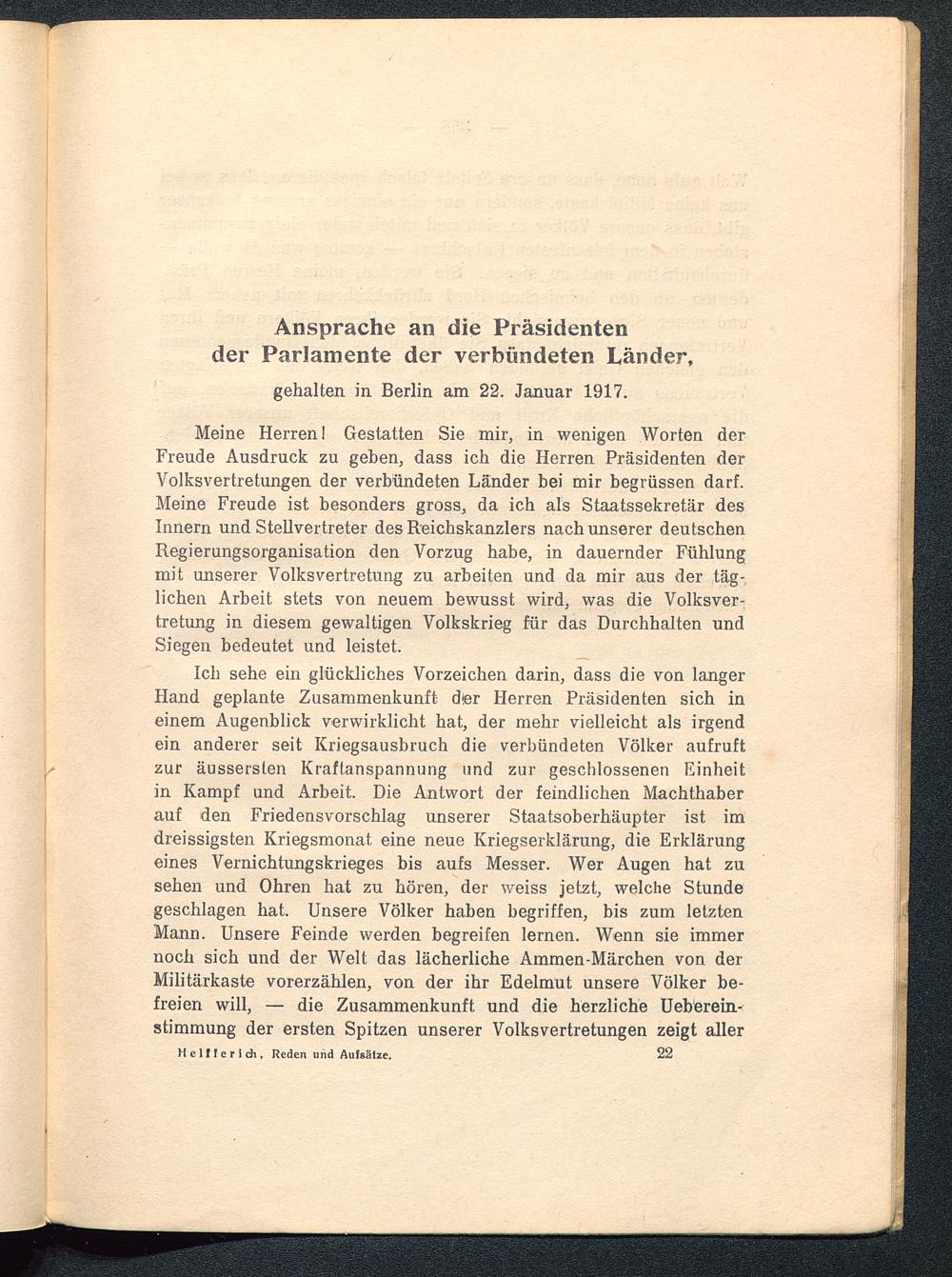 gehalten in Berlin am 22. Januar 1917.