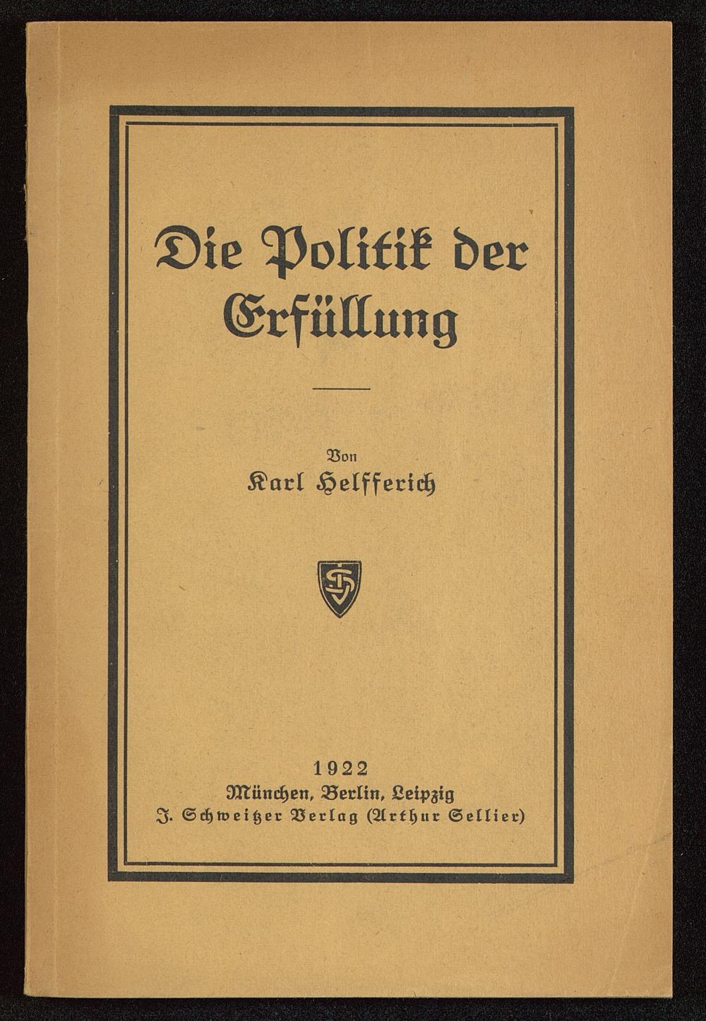 Die Politik derErfüllungVonKarl Helfferich 1922München, Berlin» Leipzig I. Schweißer Verlag (Arthur Sellier)