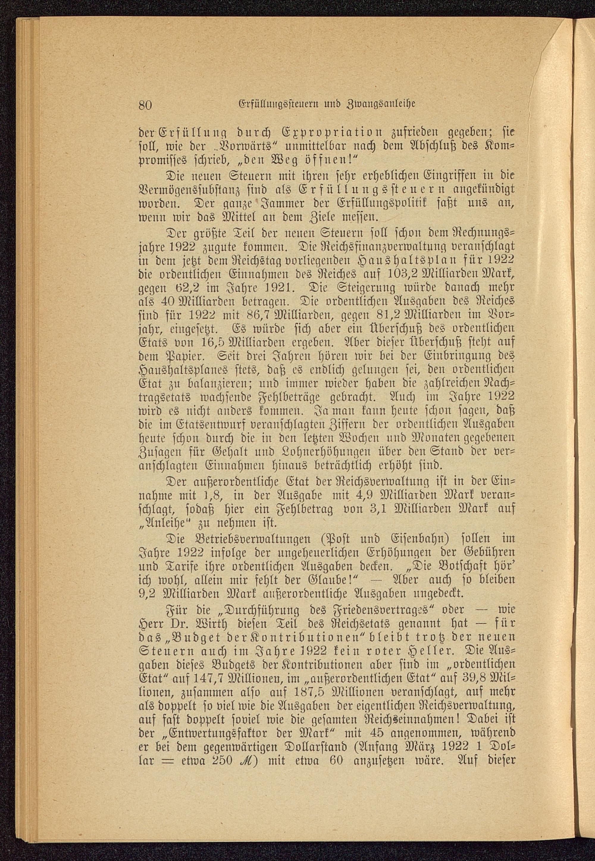 Die Betriebsverwaltungen (Post und Eisenbahn ) sollen imJahre 1922 infolge der ungeheuerlichen Erhöhungen der Gebührenund Tarife ihre ordentlichen Ausgaben decken. „Die Botschaft hör'ich wohl, allein mir fehlt der Glaube!" — Aber auch so bleiben9,2 Milliarden Mark außerordentliche Ausgaben ungedeckt.