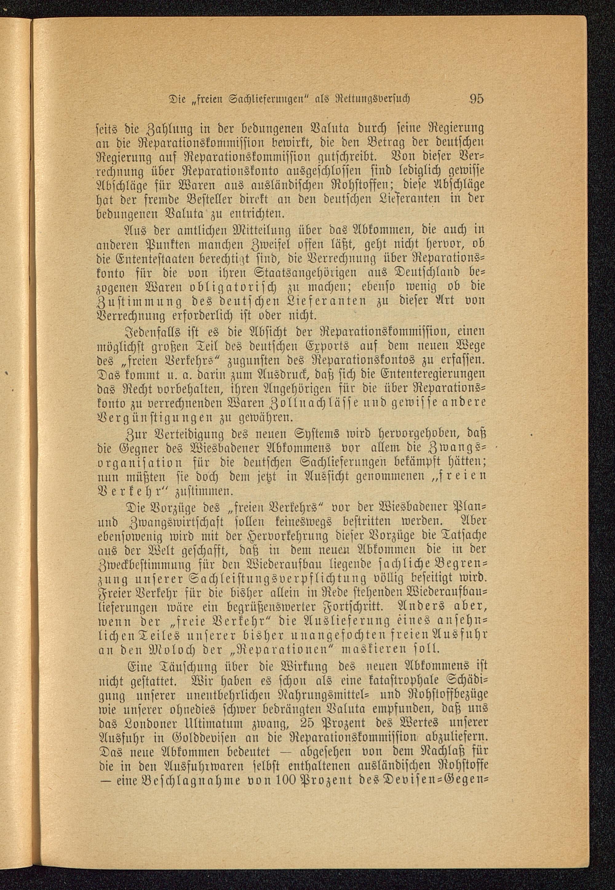Zur Verteidigung des neuen Systems wird hervorgehoben, daßdie Gegner des Wiesbadener Abkommens vor allem die Zwangs-organisation für die deutschen Sachlieferungen bekämpft hätten;nnn müßten sie doch dem jetzt in Aussicht genommenen „freienVerkeh r" zustimmen.