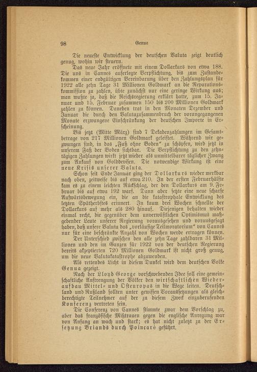 Die Conferenz von Cannes stimmte zwar dem Vorschlag zu,aber das französische Mißtrauen gegen die englische Anregung warvon Anfang an wach und stark; es hat nicht zuletzt zu der Er-setzung Briands durch Poincarö geführt.