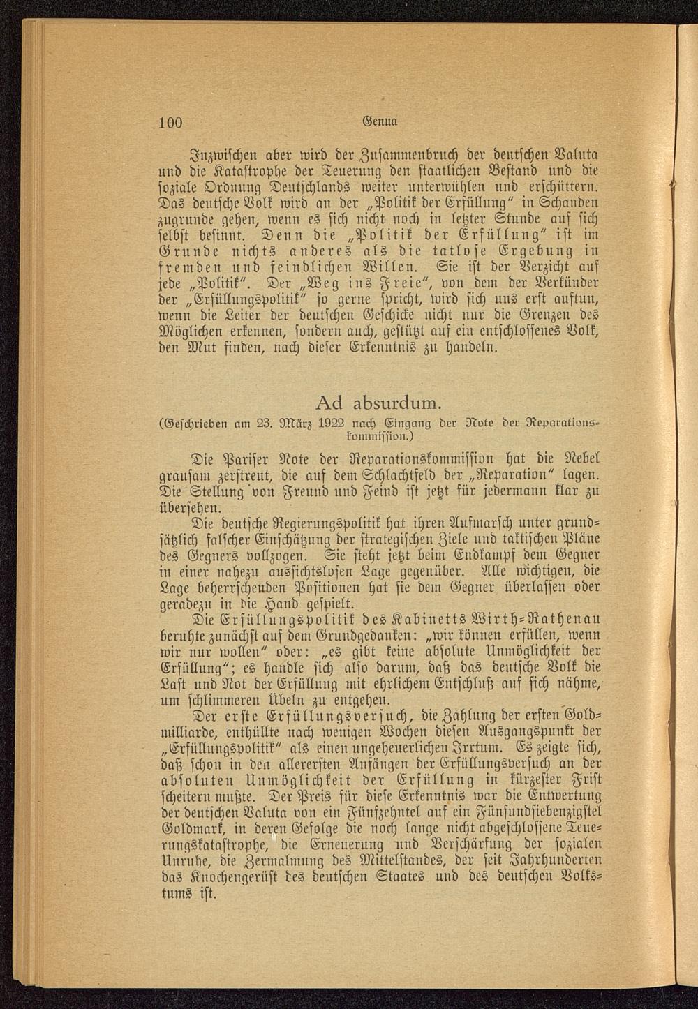 (Geschrieben cim 23. März 1922 nach Eingang der Ne>te der Reparatwns-