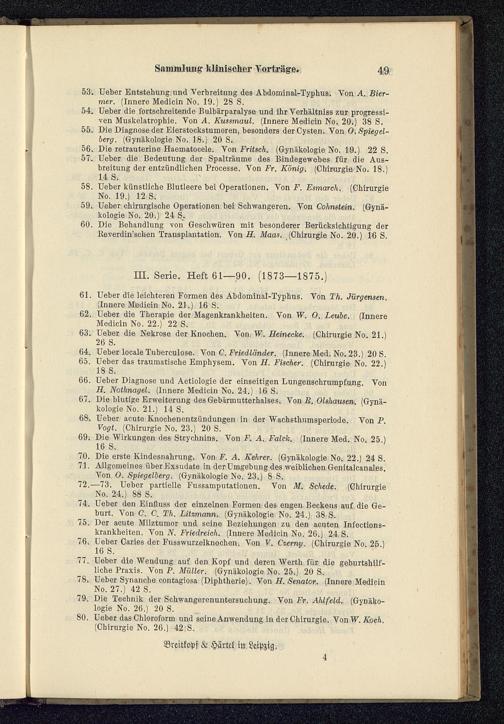 53. Ueber Entstehung und Verbreitung des Abdominal- Typhus. Von A. Bier-mer.( Innere Medicin No. 19.) 28 S.