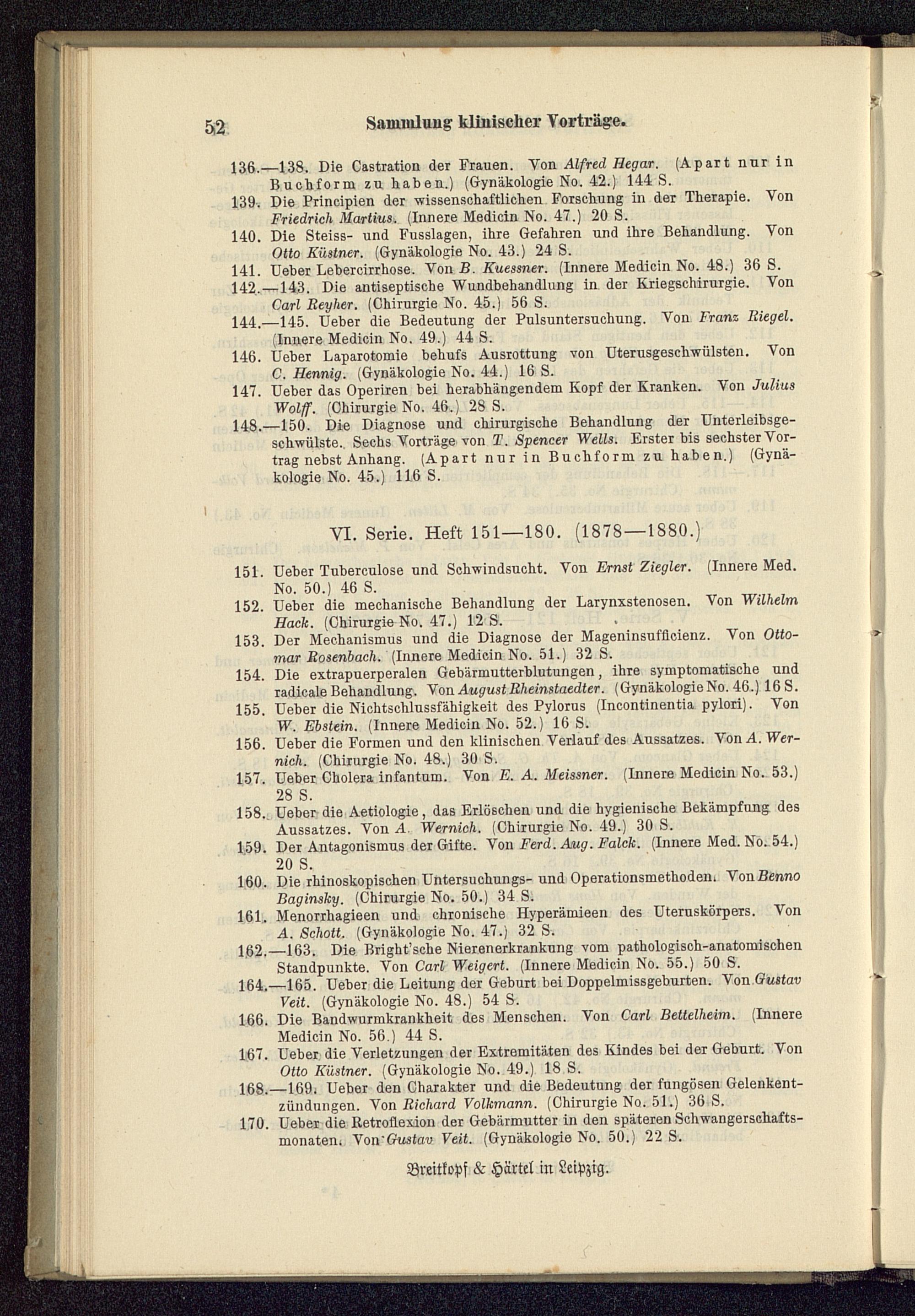 168.- 169. Ueber den Charakter und die Bedeutung der fungösen Gelenkent-zündungen. Von Richard Volkmann.( Chirurgie No. 51.) 36 S.