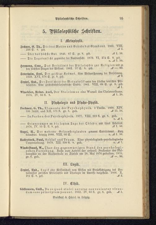 Radestock, Paul, Schlaf und Traum. Eine physiologisch- psychologischeUntersuchung. 1879. XII, 330 S. 8. geh.Windelband, W., Über den gegenwärtigen Stand der psychologi-schen Forschung. Rede zum Antritt der ordentl. Professur der Phi-losophie an der Hochschule zu Zürich am 20. Mai 1876 gehalten. 1876.M-. 90.0gr. 8. geh.