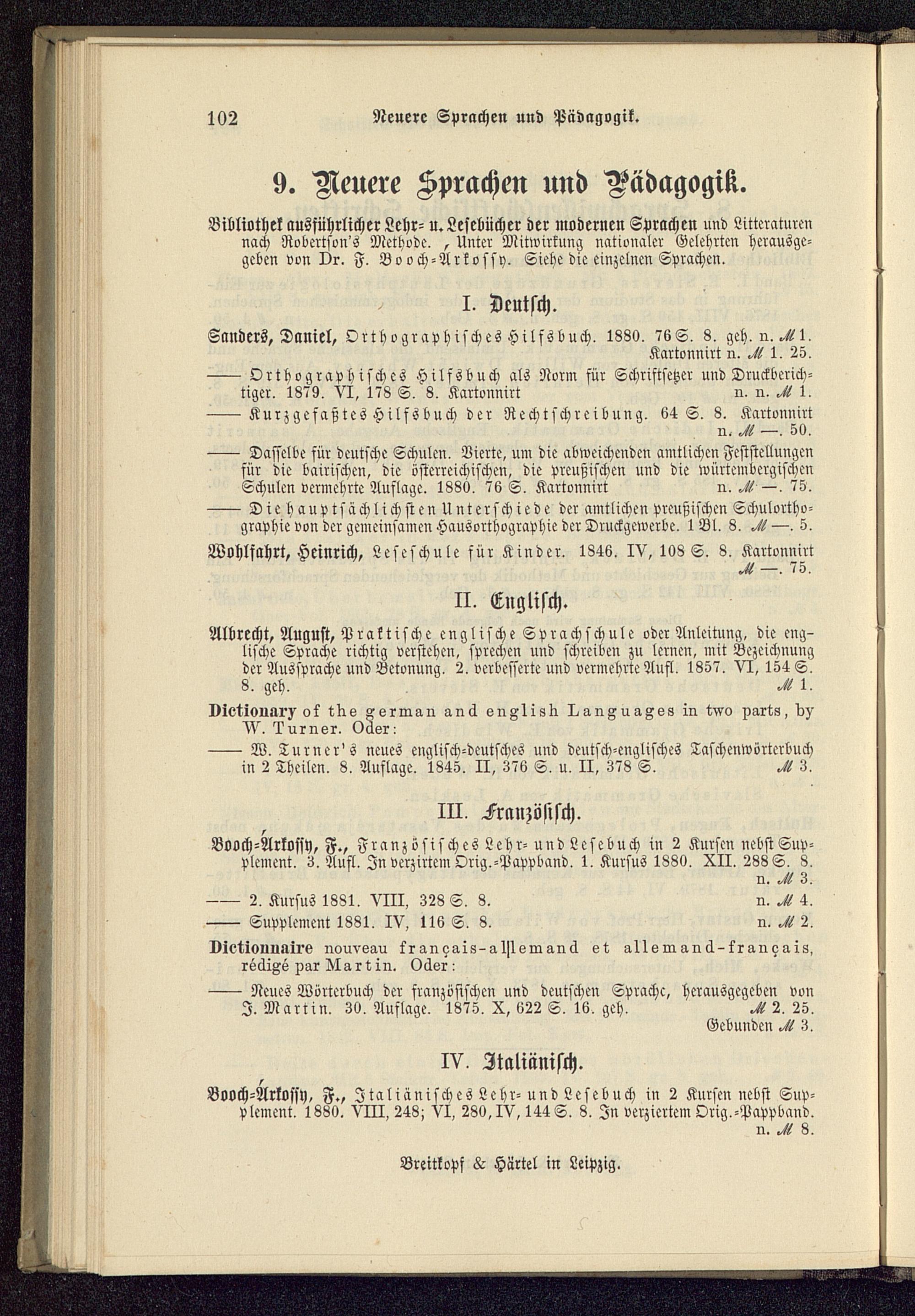 Booch- Arkossy, F., Französisches Lehr- und Lesebuch in 2 Kursen nebst Sup-plement. 3. Aufl. In verzirtem Orig.- Pappband. 1. Kursus 1880. XII. 288 S. 8.
