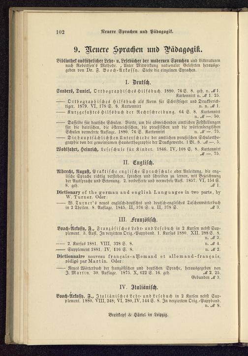 Albrecht, August, Praktische englische Sprachschule oder Anleitung, die eng-lische Sprache richtig verstehen, sprechen und schreiben zu lernen, mit Bezeichnungder Aussprache und Betonung. 2. verbesserte und vermehrte Aufl. 1857. VI, 154 S.8. geh.Dictionary of the german and english Languages in two parts, byW. Turner. Oder: