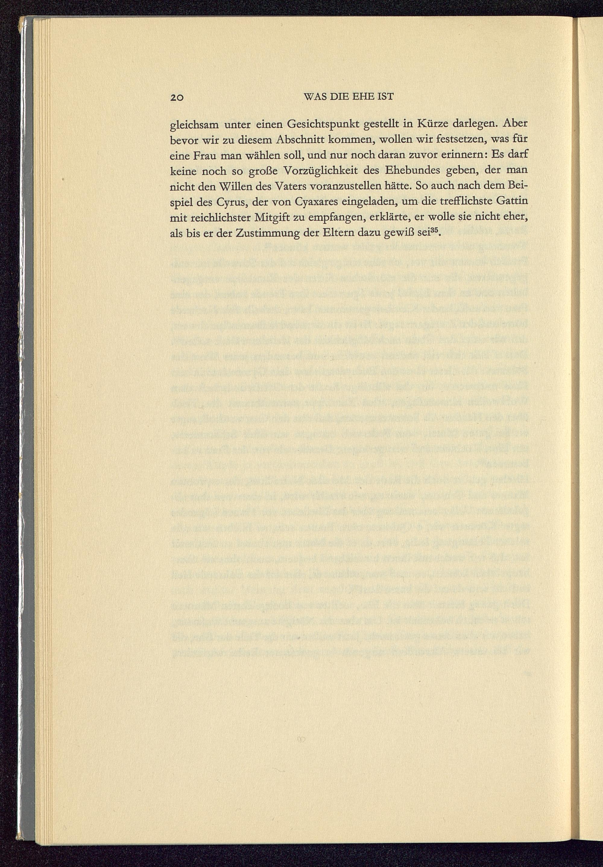 gleichsam unter einen Gesichtspunkt gestellt in Kürze darlegen. Aberbevor wir zu diesem Abschnitt kommen, wollen wir festsetzen, was füreine Frau man wählen soll, und nur noch daran zuvor erinnern: Es darfkeine noch so große Vorzüglichkeit des Ehebundes geben, der mannicht den Willen des Vaters voranzustellen hätte. So auch nach dem Bei-spiel des Cyrus, der von Cyaxares eingeladen, um die trefflichste Gattinmit reichlichster Mitgift zu empfangen, erklärte, er wolle sie nicht eher,als bis er der Zustimmung der Eltern dazu gewiß sei 35 .