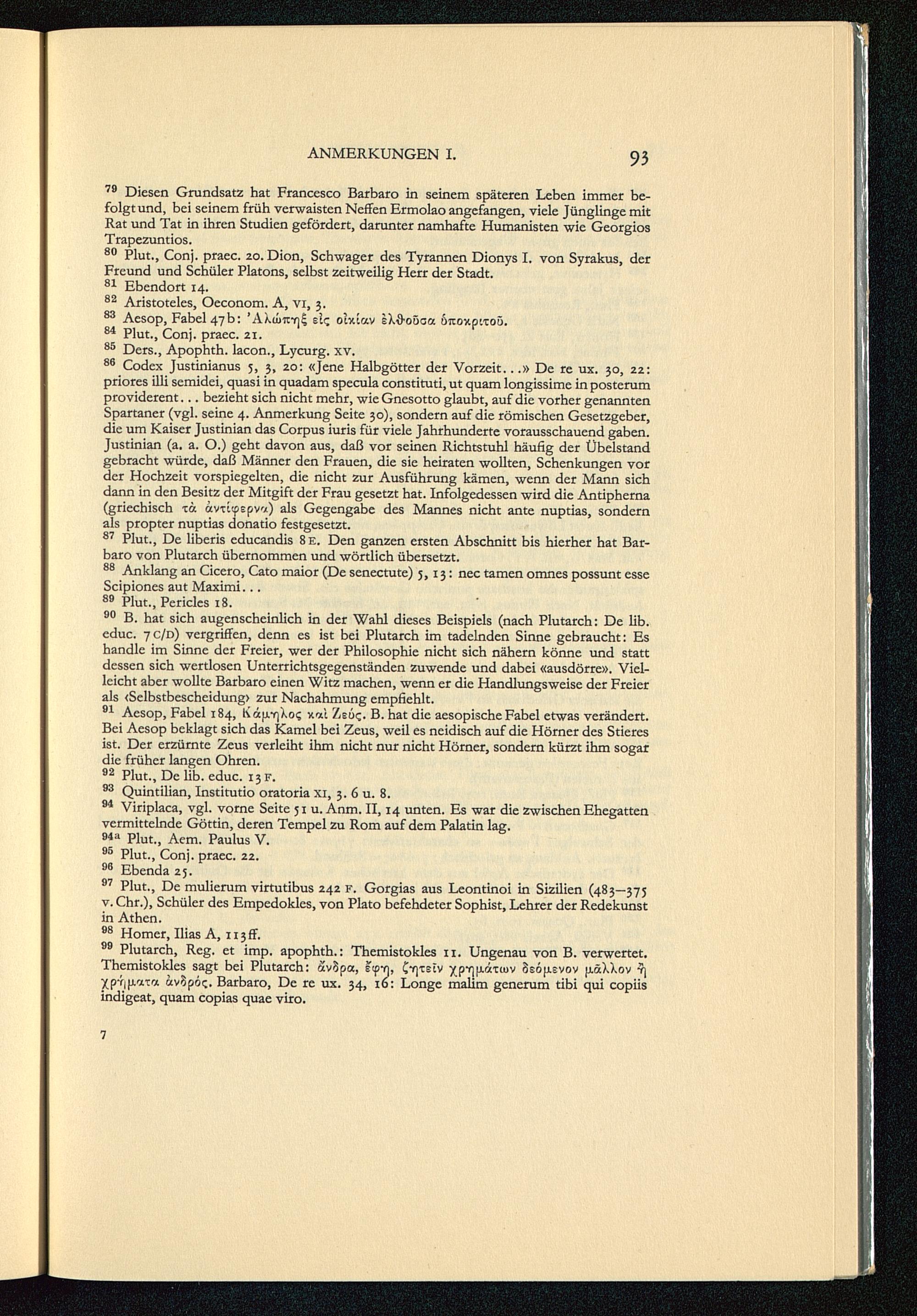 87 Plut., De liberis cducandis 8e. Den ganzen ersten Abschnitt bis hierher hat Bar-baro von Plutarch übernommen und wörtlich übersetzt.