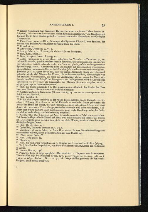 99 Plutarch, Reg. et imp. apophth.: Themistokles 11. Ungenau von B. verwertet.Themistokles sagt bei Plutarch : av5pa, E<p*n, C"*]tetv ^p^fictxtuv 8s6|j.evov (iäXXov r\Xp-f|fj.ata ävSpoc. Barbaro, De re ux. 34, 16: Longe malim generum tibi qui copiisindigeat, quam copias quae viro.
