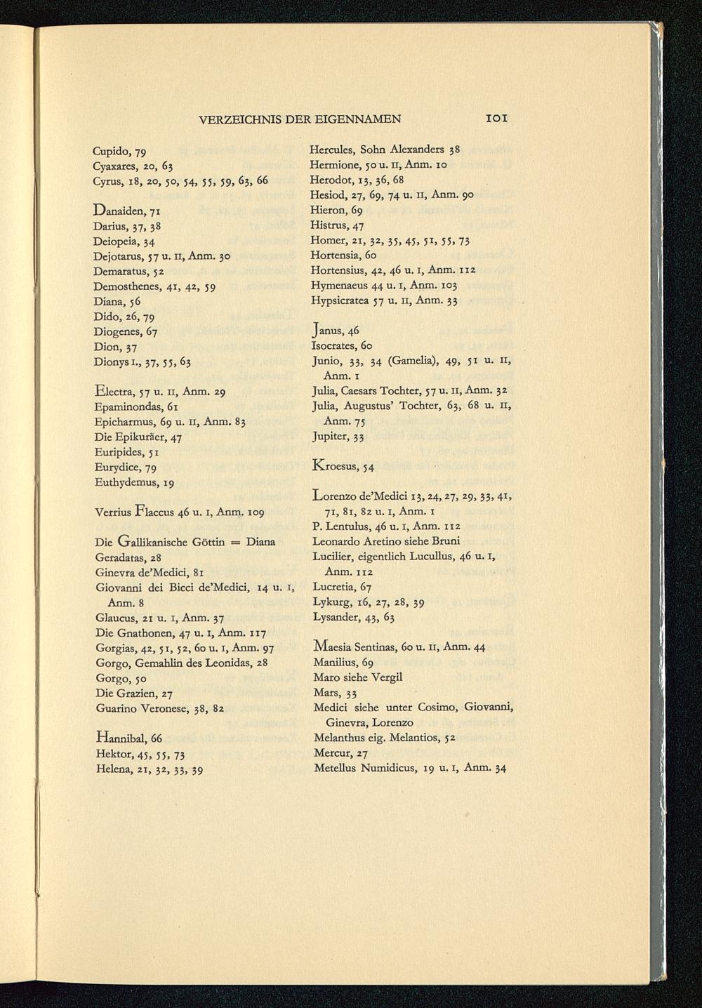 71, 81, 82 u. 1, Anm. 1P. Lentulus, 46 u. I, Anm. 112Leonardo Aretino siehe BruniLucilier, eigentlich Lucullus, 46 u. I,