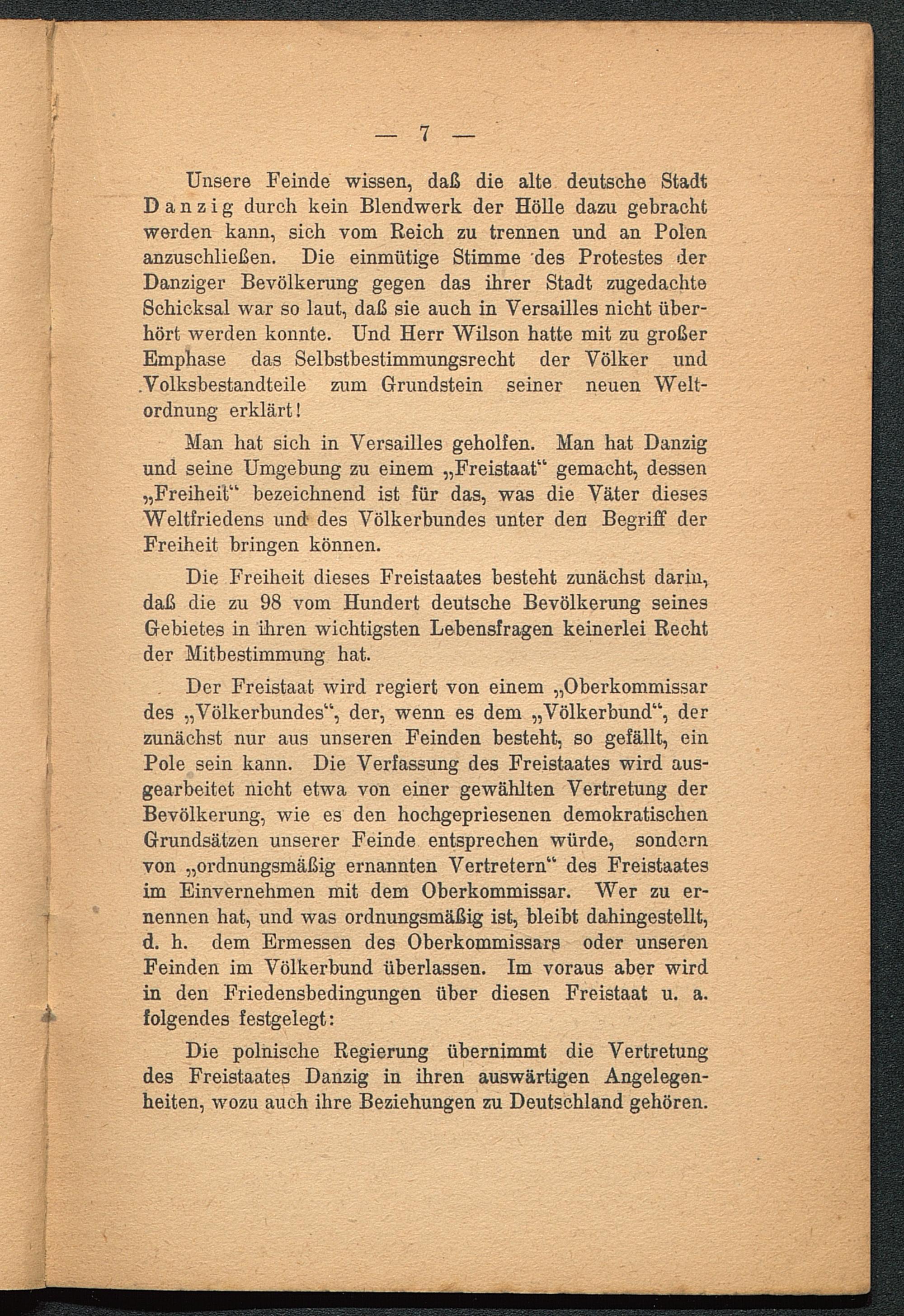Die Freiheit dieses Freistaates besteht zunächst darin,daß die zu 98 vom Hundert deutsche Bevölkerung seinesGebietes in ihren wichtigsten Lebensfragen keinerlei Rechtder Mitbestimmung hat.