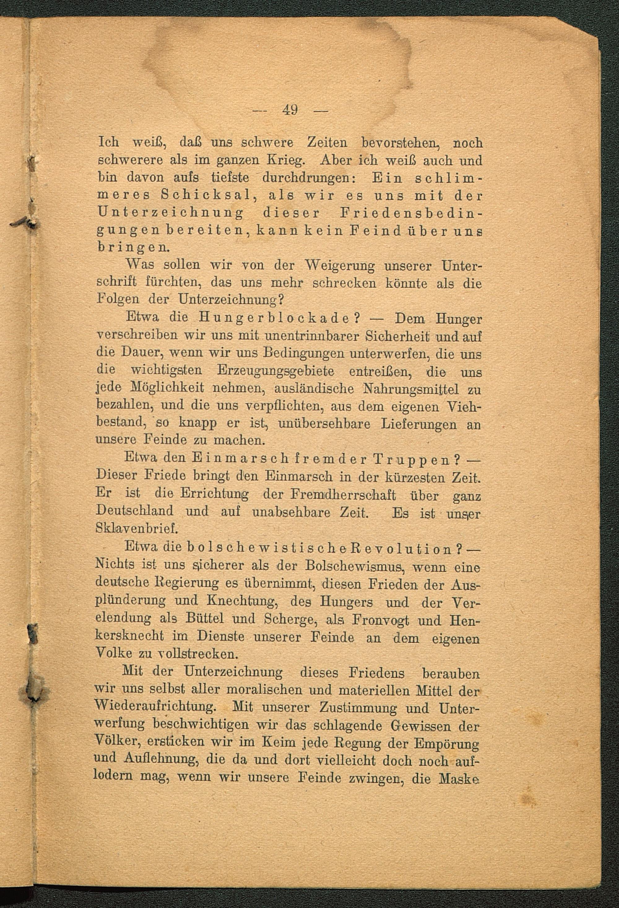 Etwa den Einmarsch fremder Truppen? ■—Dieser Friede bringt den Einmarsch in der kürzesten Zeit.Er ist die Errichtung der Fremdherrschaft über ganzDeutschland und auf unabsehbare Zeit. Es ist unsierSklavenbrief.