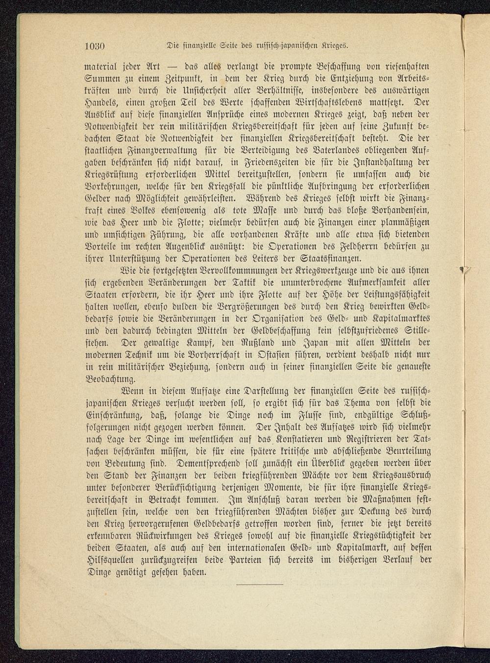 Wie die fortgesetzten Vervollkommnungen der Kriegswerkzeuge und die aus ihnensich ergebenden Veränderungen der Taktik die ununterbrochene Aufmerksamkeit allerStaaten erfordern, die ihr Heer uud ihre Flotte auf der Höhe der Leistungsfähigkeithalten wollen, ebenso dnlden die Vergrößerungen des dnrch den Krieg bewirkten Geld-bedarfs sowie die Veränderungen in der Organisation des Geld- und Kapitalmarktesund den dadurch bedingten Mitteln der Geldbeschaffung kein selbstzufriedenes Stille-stehen. Der gewaltige Kampf, den Nußland und Japan mit allen Mitteln dermodernen Technik um die Vorherrschaft in Ostasien führen, verdient deshalb nicht nurin rein militärischer Beziehung, sondern auch in seiner finanziellen Seite die genauesteBeobachtung.