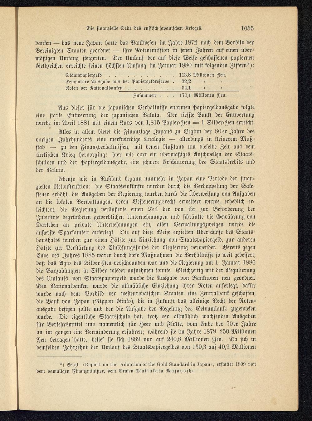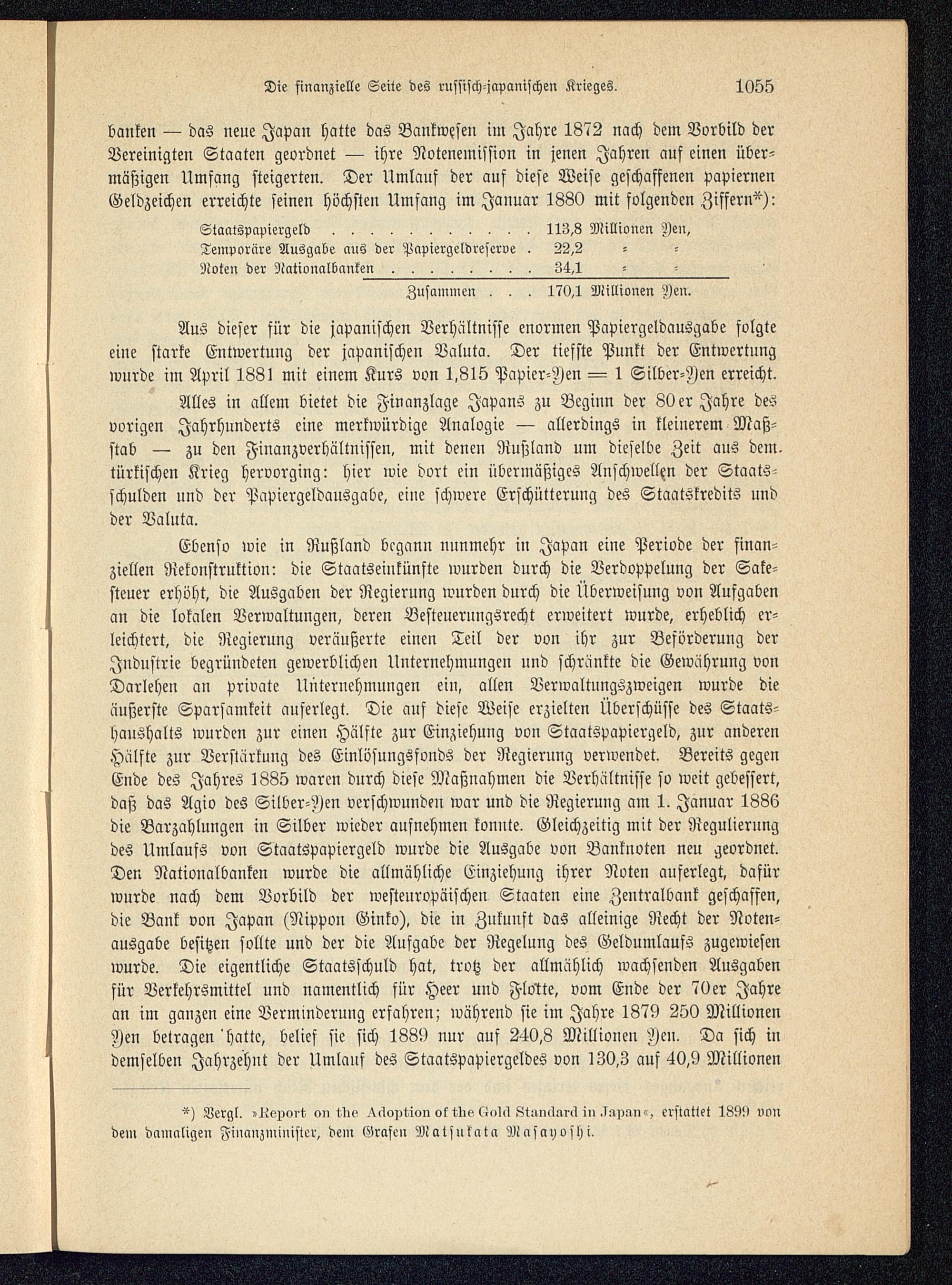 ^) Vergl. »lioxort cm t lic- .-V<kopt.ic»n ol tlie (!>>l>1 >^t!ui>l.->r>1 in .lupun-, erstattet 189!» vondem damaligen Fiuanzminister, dem Grafen Matsukata Mnsanoshi.