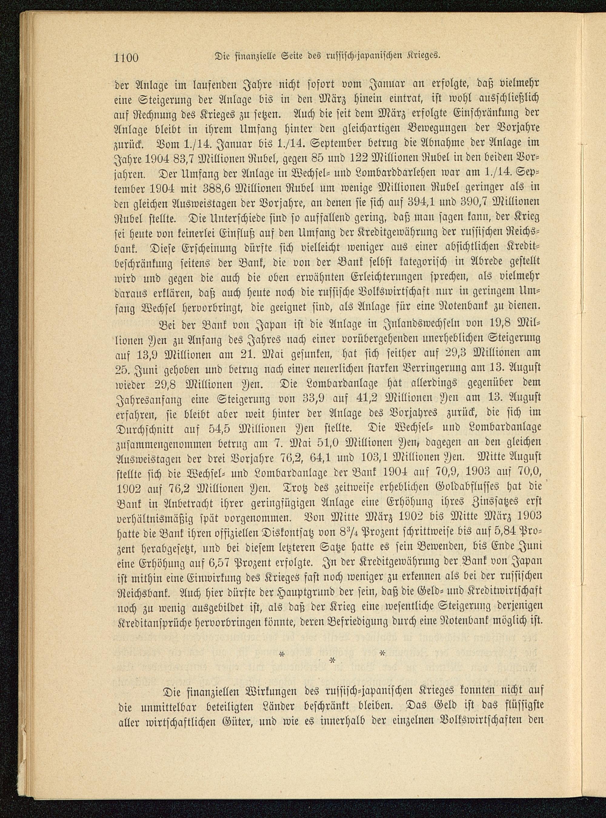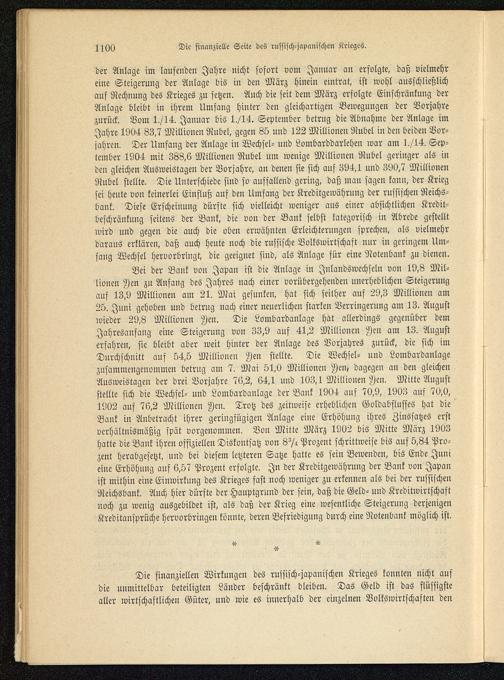 Die finanziellen Wirkungen des russisch -japanischen Krieges konnten nicht aufdie unmittelbar beteiligten Länder beschränkt bleiben. Das Geld ist das flüssigstealler wirtschaftlichen Güter, nnd wie es innerhalb der einzelnen Volkswirtschaften den