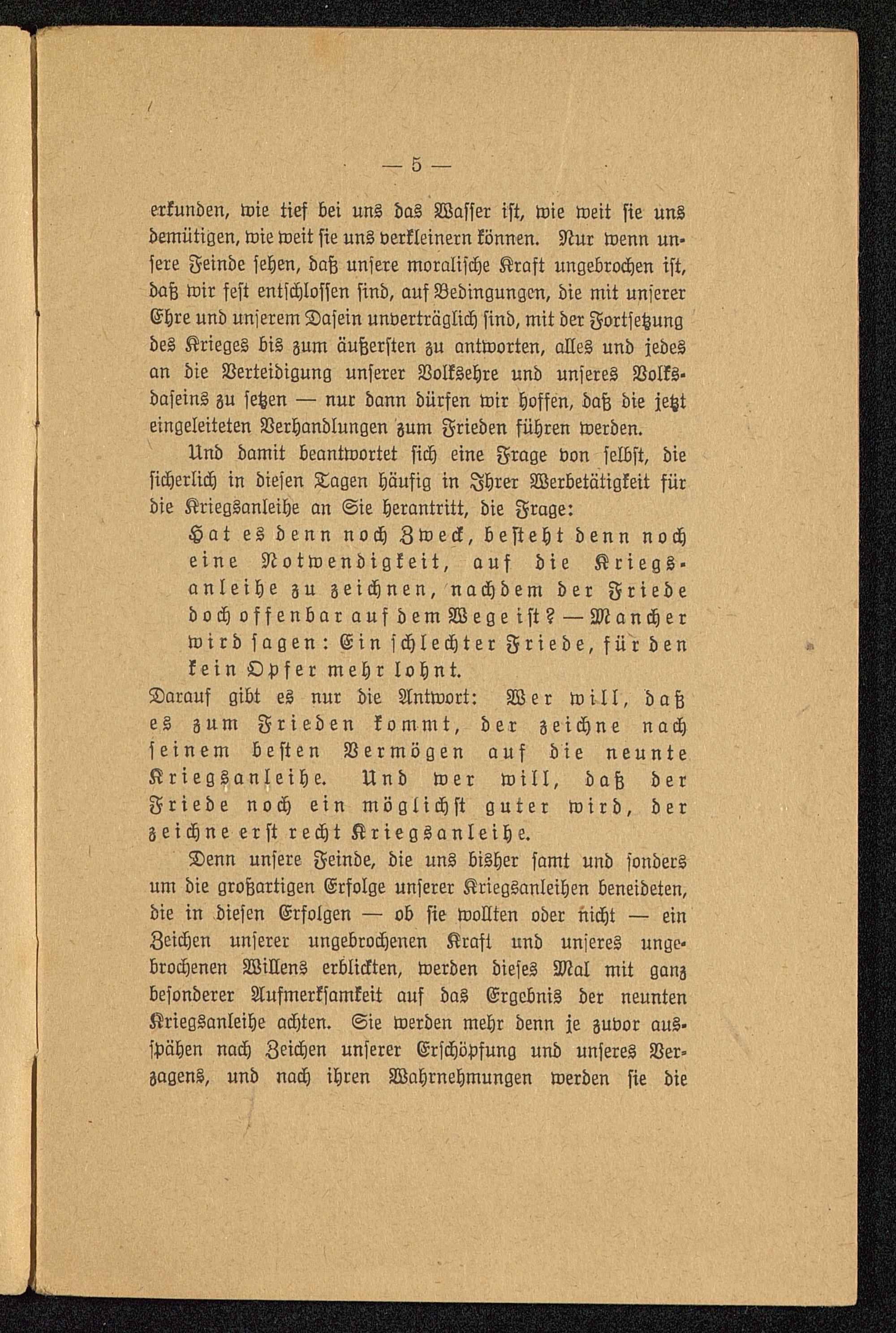 Und damit beantwortet sich eine Frage von selbst, diesicherlich in diesen Tagen häufig in Ihrer Werbetätigkeit fürdie Kriegsanleihe an Sie herantritt, die Frage: