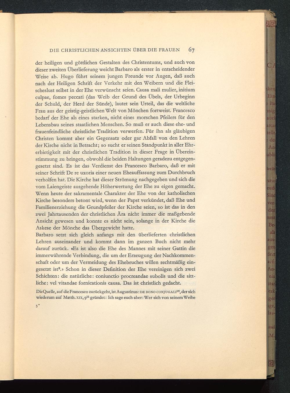 DieQuelle, auf die Francesco zurückgeht, ist Augustinus: de eono conjügali 10 , der sich•wiederum auf Matth. xix,9 u gründet: Ich sage euch aber: Wer sich von seinem Weibe
