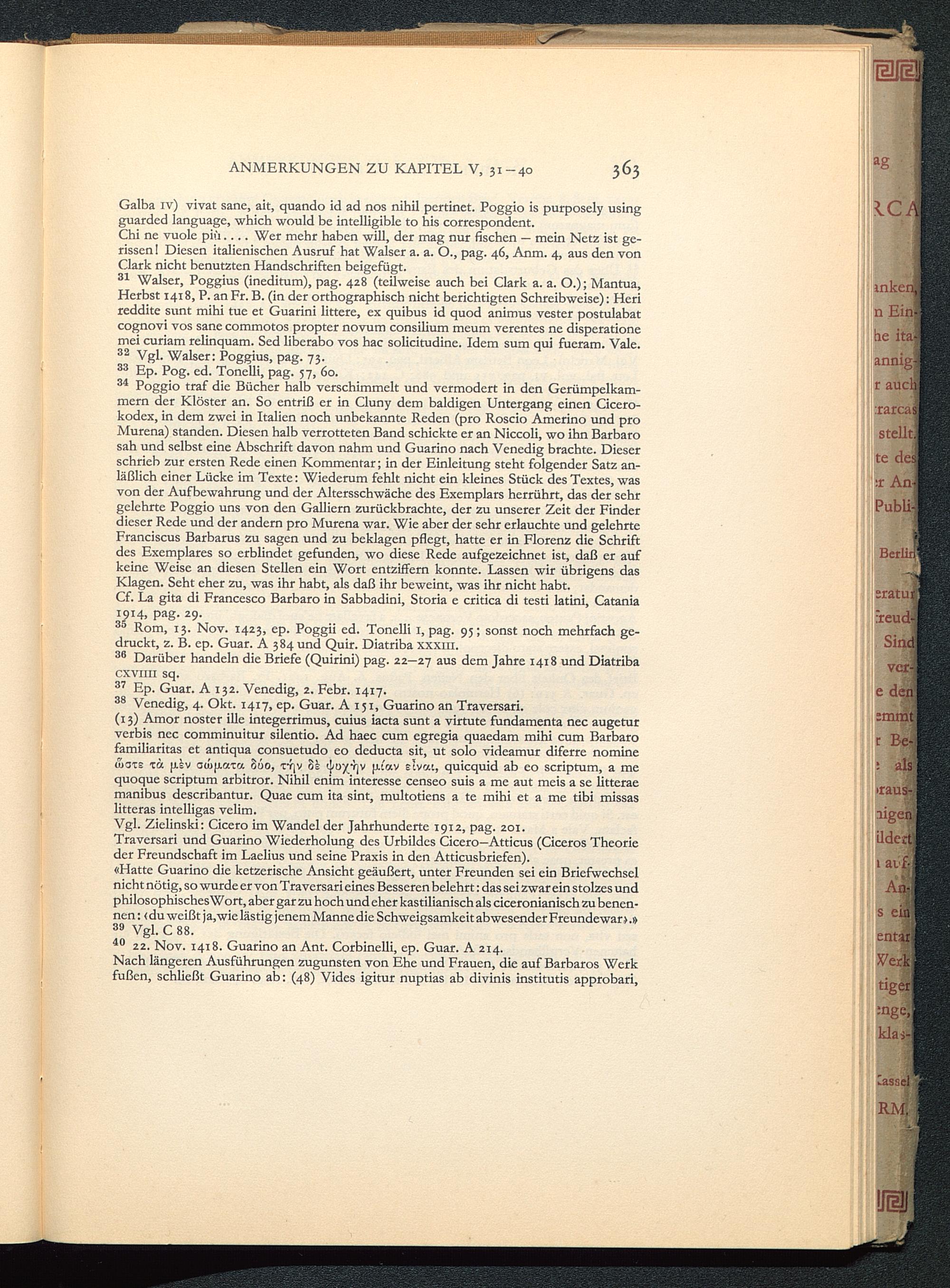 35 Rom , 13. Nov. 1423, ep. Poggii ed. Tonelli 1, pag. 95; sonst noch mehrfach ge-druckt, z. B. ep. Guar. A 384 und Quir. Diatriba xxxm.