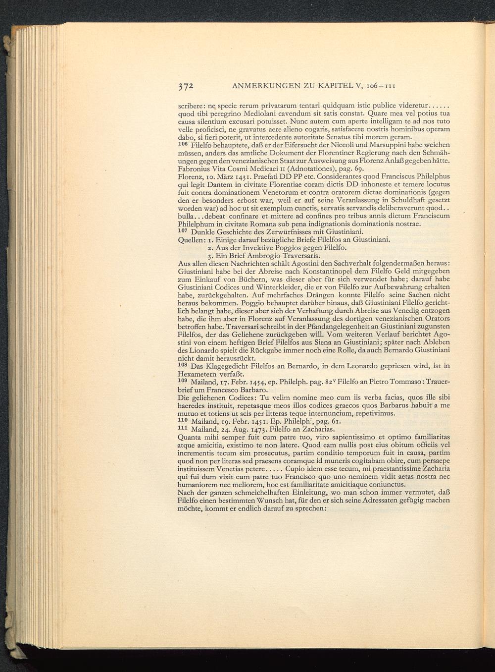 107 Dunkle Geschichte des Zerwürfnisses mit Giustiniani.Quellen: 1. Einige darauf bezügliche Briefe Filelfos an Giustiniani.