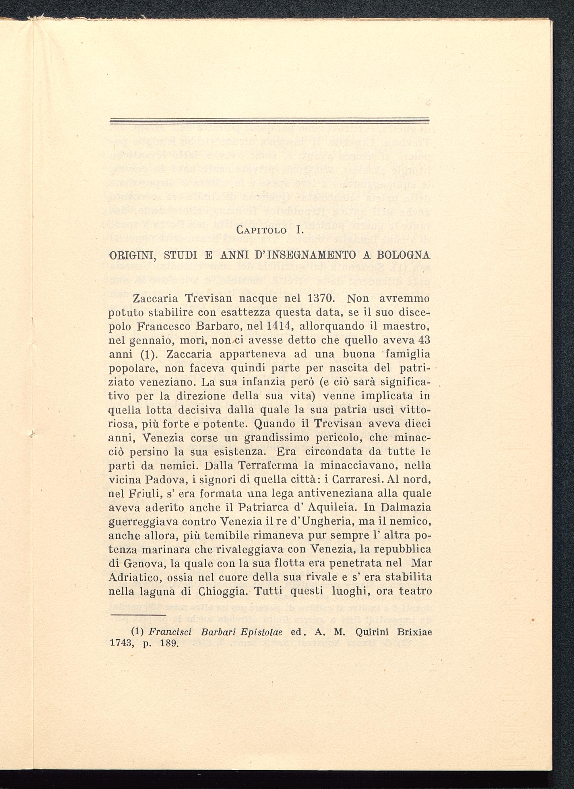(1) Francisci Barbari Epistolae ed. A. M. Quirini Brixiae1743, p. 189.