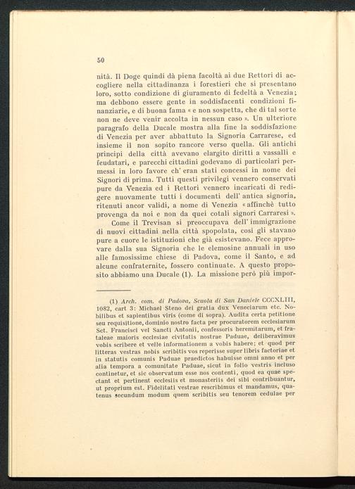 (1) Arch. com. di Padova, Scuola di San Daniele CCCXLIII,1082, cart 3: Michael Steno dei gratia dux Veneciarum etc. No-bilibus et sapientibus viris (come di sopra). Audita certa petitioneseu requisitione, dominio nostro facta per procuratorem ecclesiarumSet. Francisci vel Sancti Antonii, confessoris heremitarum, et fra-taleae maioris ecclesiae civitatis nostrae Paduae, deliberavimusvobis scribere et velie informationem a vobis habere; et quod perlitteras vestras nobis scribitis vos reperisse super libris factoriae etin statutis comunis Paduae praedictos habuisse omni anno et peralia tempora a comunitate Paduae, sicut in folio vestris inclusocontinetur, et sic observatum esse nos contenti, quod ea quae spe-ctant et pertinent ecclesiis et monasteriis dei sibi contribuantur,ut proprium est. Fidelitati vestrae rescribimus et mandamus, qua-tenus secundum modum quem scribitis seu tenorem cedulae per