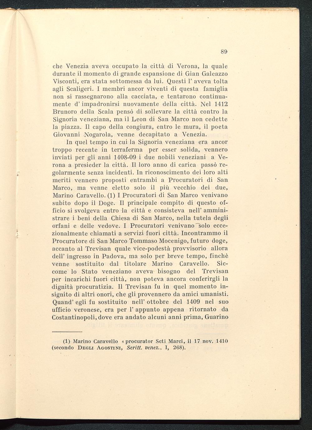 (1) Marino Caravello « procurator Seti Marci, il 17 nov. 1410(secondo Degli Agostini, Scritt. venez., I, 268).