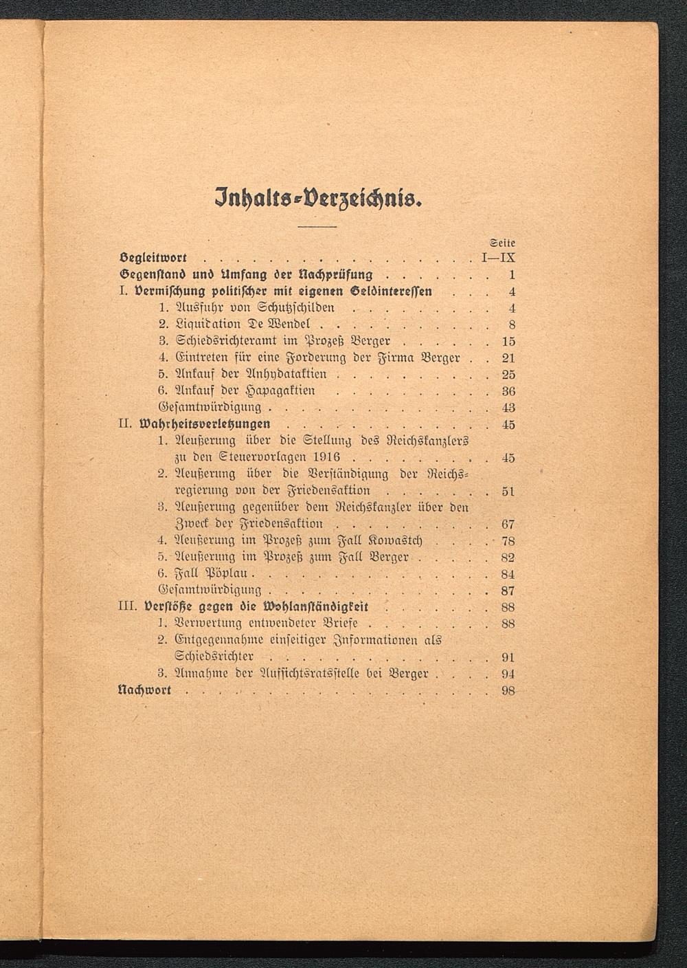 Inhalts-Verzeichnis.