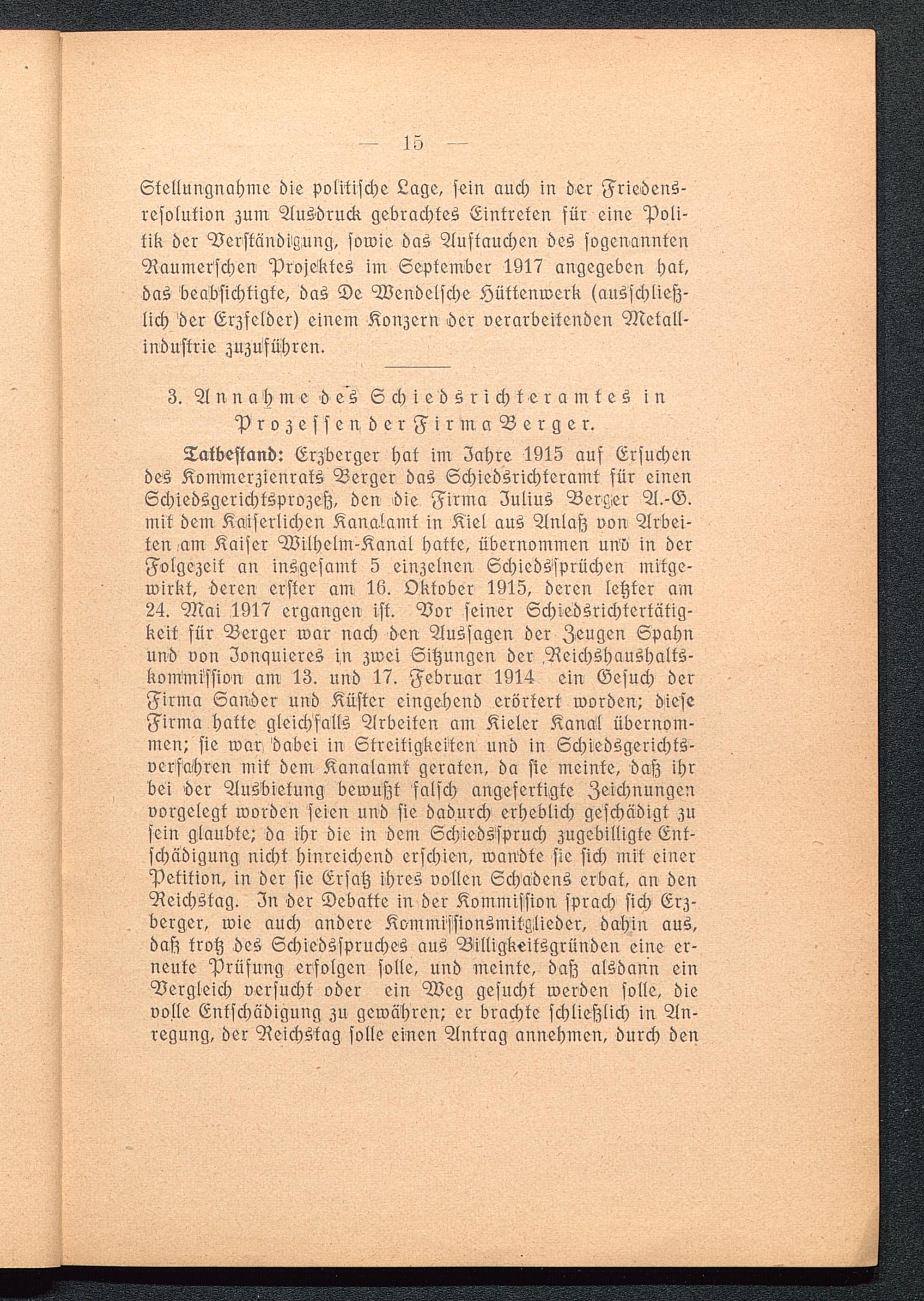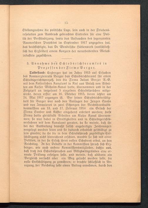 Stellungnahme die politische Lage, sein auch in der Friedens-resolution zum Ausdruck gebrachtes Eintreten für eine Poli-tik der Verständigung, sowie das Auftauchen des sogenanntenRaumerschen Projektes im September 1917 angegeben hat,das beabsichtigte, das De Wendelsche Hüttenwerk (ausschließ-lich der Erzfelder) einem Konzern Her verarbeitenden Metall-industrie zuzuführen.