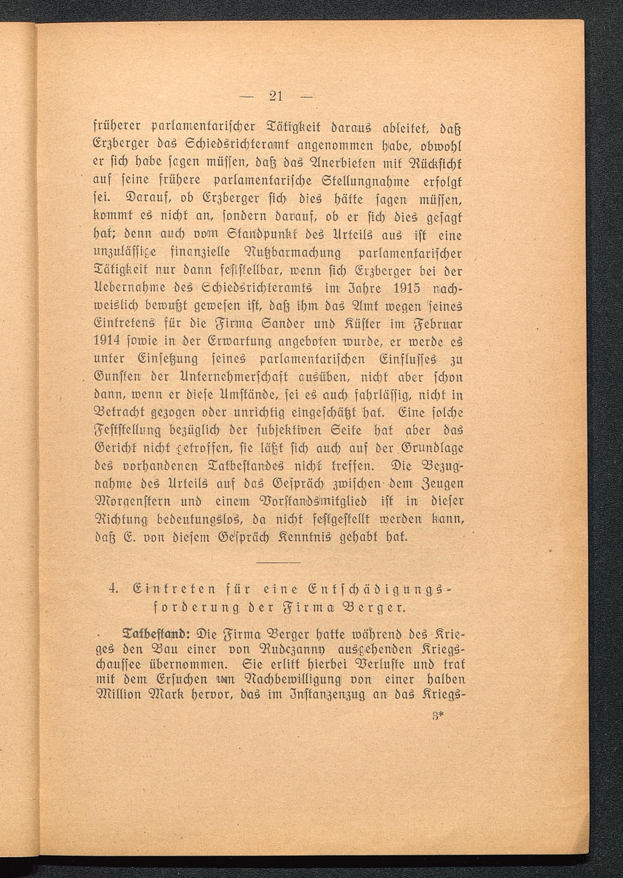 4. Eintreten für eine Entschädigungs-forderung der Firma Berger.