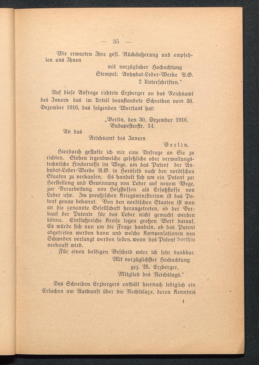 Auf diese Anfrage richtete Erzberger an das Reichsamtdes Innerv das im Arteil beanstandete Schreiben vom 3V.Dezember 1S16, das folgenden Wortlaut hat: