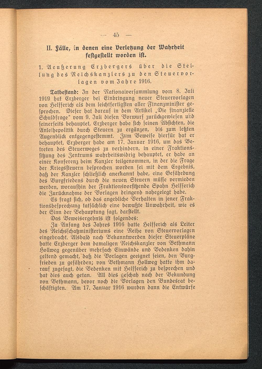 1. Aeußerung Erzbergers über die Stel-lung des Reichskanzlers zu den Steuervor-lagen v o in I a h r e 1916.