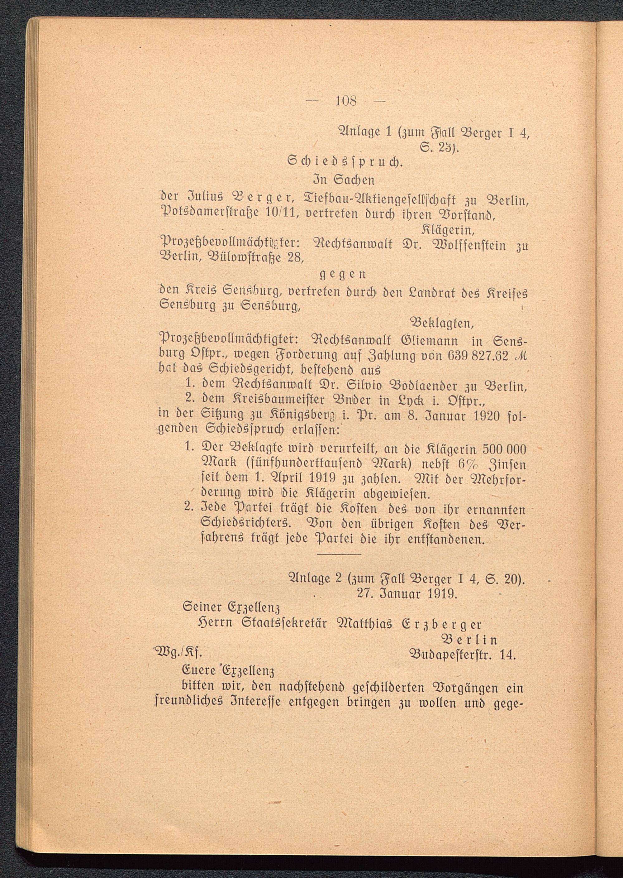 Prozeßbevollmächkö-ter: Reehtsanwalt Dr. Wolffenstein zuBerlin , Bülowstrasze 28,