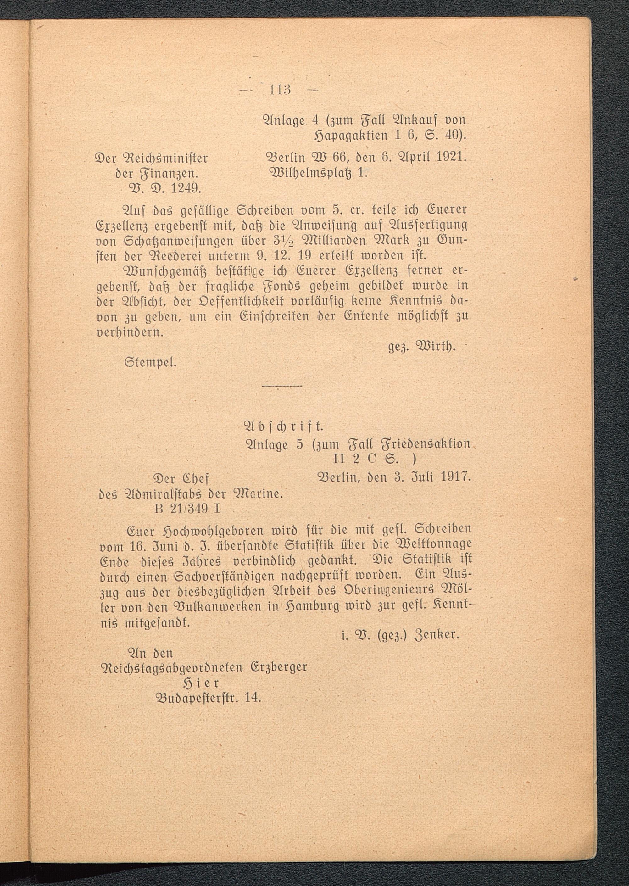 Reichstagsabgeordneten ErzbergerHierBudapesterstr. 14.