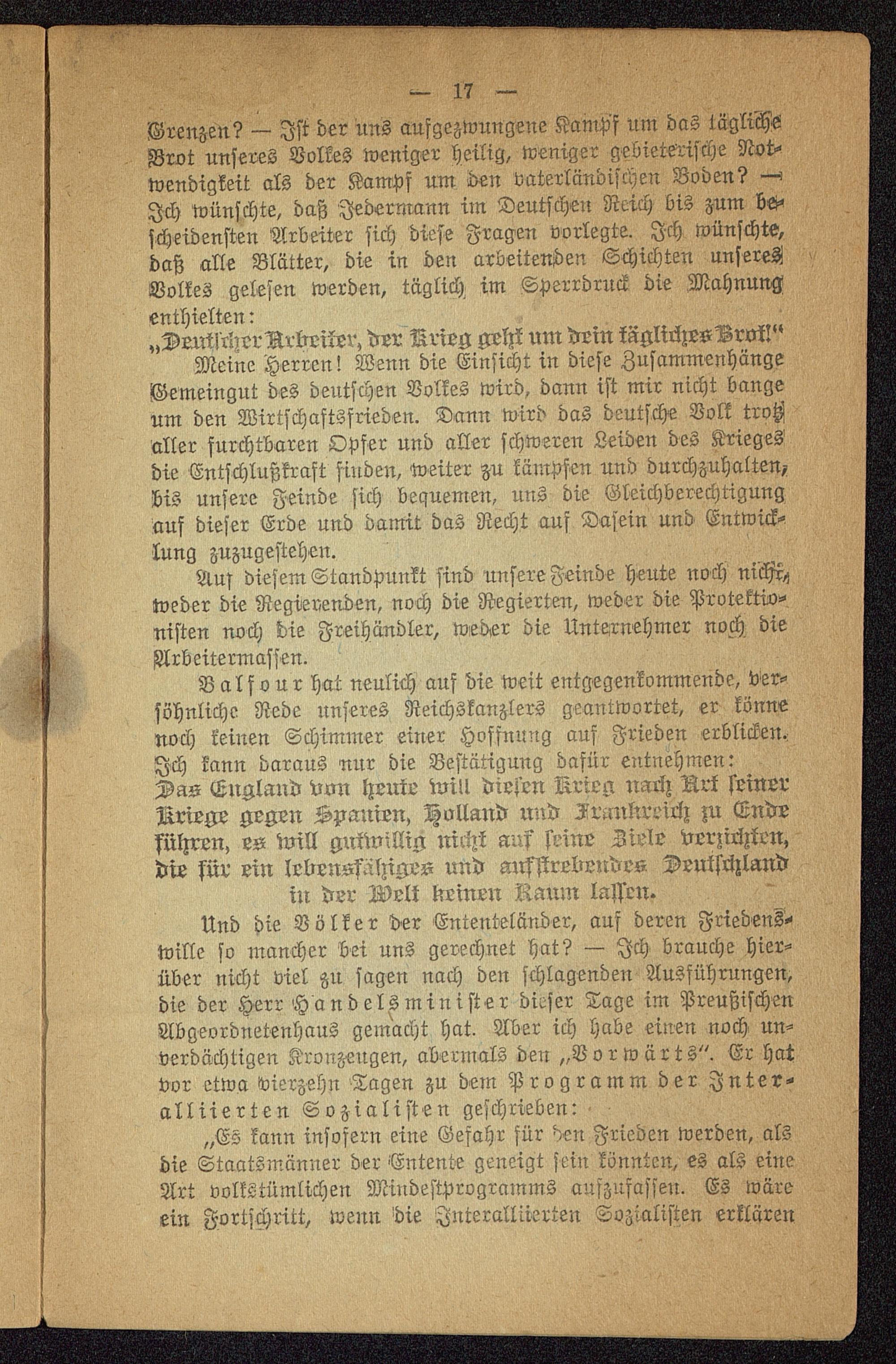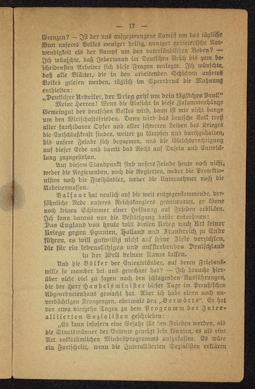 „Es kann insofern eine Gefahr für den Frieden werden, alsdie Staatsmänner der Entente geneigt sein könnten, es als eineArt volkstümlichen Mindestprogramms aufzufassen. Es wäreein Fortschritt, wenn die Interalliierten Sozialisten erklären