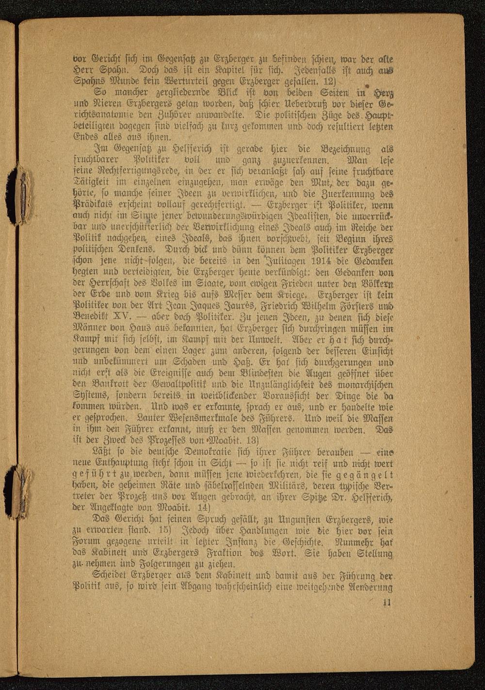 vor Gericht sich im Gegensatz zu Erzberger zu befinden schien, war der alteHerr Spähn. Doch das ist sin Kapitel für sich. Jedenfalls ist auch ausSpahns Munde kein Werturteil gegen Erzberger gefallen. 12)