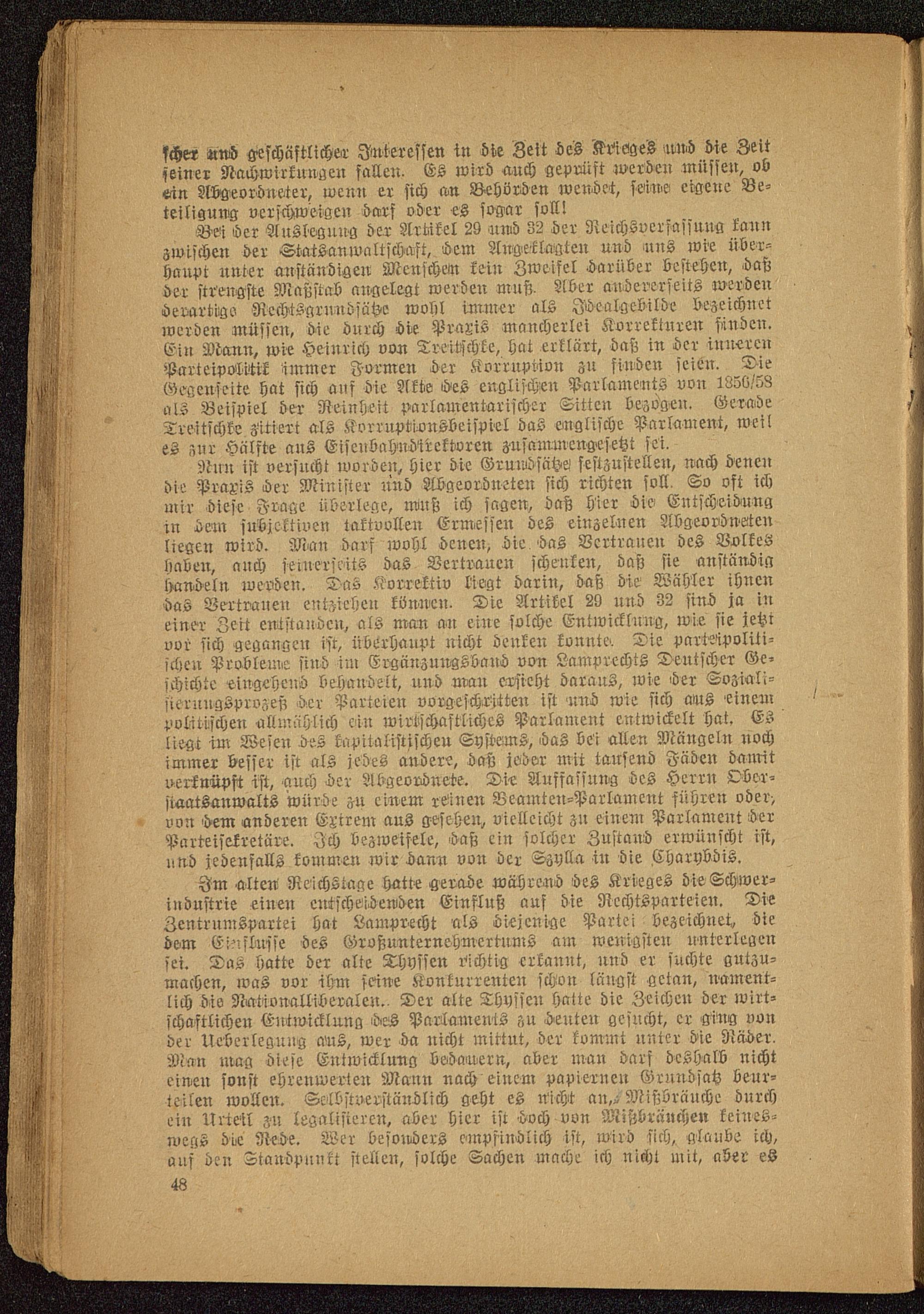 Bei «der Auslegung der Artikel 29 »nd 32 der Neichsversassnng kaunzwischen der Statsanwaltschaft, -dem Angeklagte» und lnns wie über-Haupt unter anständigen Mensche« kein Zweifel darüber bestehen, daßder strengste Maßstab augelegt werden muß. Aber andererseits werdenderartige Nechtsarnndsätze wohl immer als Mealgebilde bezeichnetwerden müssen, die durch die Praxis mancherlei Korrektnren finden.Ein Mann, wie Heinrich vom Treitschke , hat erklärt, daß in der innerenParteipM'tik immer Formen der Korruption zu finden seien. DieGegenseite hat sich ans die Akts >des englischen Parlaments von 1850/53als Beispiel der Reinheit parlamentarischer Sitten bezögen. GeradeTreitschke zitiert als Kvrruptionöbeispicl das englische Parlament, weiles zur Hälfte aus Eisenbahndircktvren znsannnengesetzt sei.
