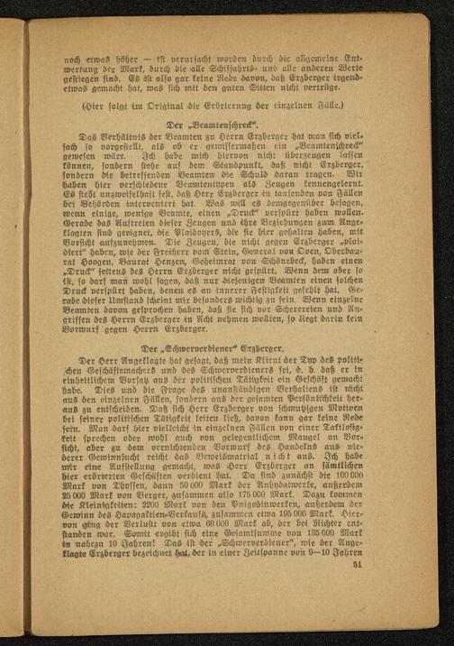 Das Verhältnis der Beamten zu Herrn Erzberger Hat man sich viel-fach so vorgestellt, als ob er gewissermaßen ein „Beamtenschreck"gewesen wäre. Ich habe mich hiervon nicht überzeugen lassenkönnen, sondern stehe auf dem Standpunkt, daß nicht Erzberger,sondern die betreffenden Beamten Sie Schuld daran tragen. Wirhaben hier verschiedene Veamtentypen als Zeugen kennengelernt.Es steht unzweifelhaft fest, daß Herr Erzberger -in taufenden von Fällenbei Behörden interveniert hat. Was will es demgegenüber besagen,wenn einige, wenige Beamte, einen „Druck" verspürt haben wollen-Gerade das Auftreten dieser Zeugen nnd ihre Beziehungen zum Ange-klagten sind geeignet, die PlaidoyerS, die sie hier gehalten Haben, mitVoisicht aufzunehmen, Die Zeugen, die nicht gegen Erzberger „plai-öiert" haben, wie der Freiherr vom" Stein, General von Oven, Oberbau-rat Hoogen, Banrat Henze», Geheimrat von Schönebeck , haben einen„Druck" seitens des Herrn Erzberger nicht gespürt. Wenn dem aber soist, so darf man wohl sagen, daß nur diejenigen Beamten einen solchenDruck verspürt haben, denen -eS an innerer Festigkeit gefehlt hat. Ge-rade dieser Umstand scheint Mir besonders wichtig zu sein. Wenn einzelneBeamten davon gesprochen haben, daß sie sich vor Scherereien und An-griffen des Herrn Erzberger in Acht nehmen wollte», fo liegt darin keinBorwurf gegen Herrn Erzberger.