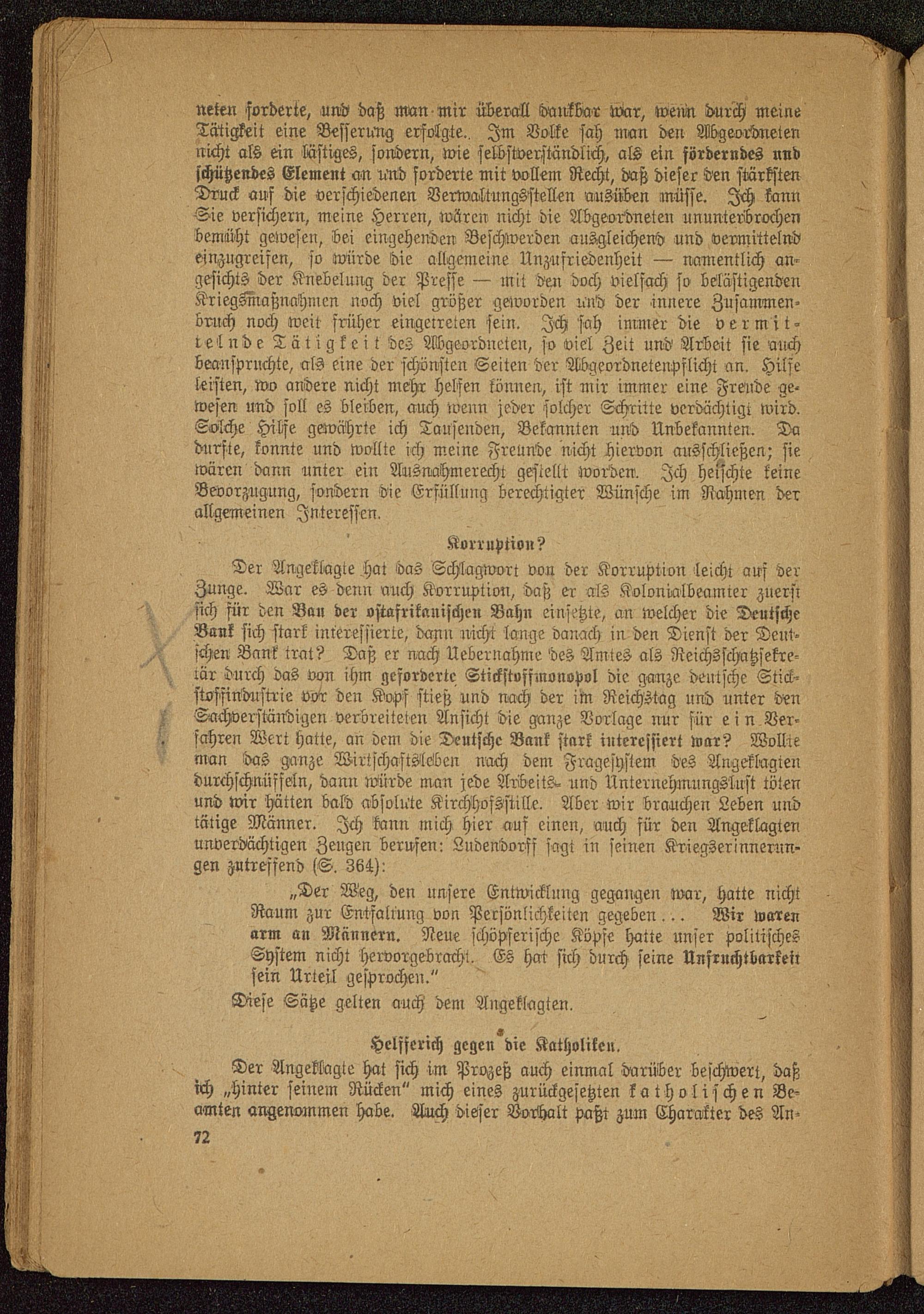 Der Angeklagte hat sich im Prozeß auch einmal darüber beschwert, daßich „hinter seinem Rücken" mich eines zurückgesetzten kath o lischen Be-amten angenommen habe. Auch dieser Vorhalt paßt zum Charakter des An-