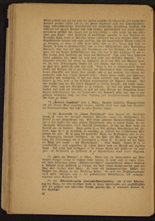 Die Württembergische Zentru«S--K«rresp»«denz: (Es ist ein) Skandal,daß 'der Mann, der dem deutschen Volke in seiner schwierigsten und unglücklichstenZeit die größten und schwersten Dienst« geleistet hat, s-o behandelt worden ist.wie Erjberg«r.
