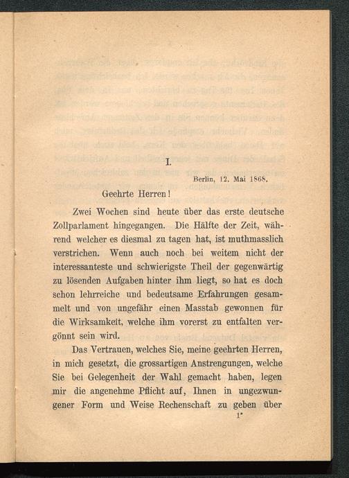 Das Vertrauen, welches Sie, meine geehrten Herren,in mich gesetzt, die grossartigen Anstrengungen, welcheSie bei Gelegenheit der Wahl gemacht haben, legenmir die angenehme Pflicht auf, Ihnen in ungezwun-gener Form und Weise Rechenschaft zu geben über