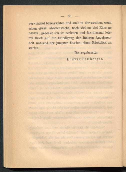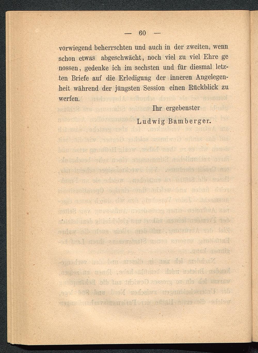 vorwiegend beherrschten und auch in der zweiten, wennschon etwas abgeschwächt, noch viel zu viel Ehre genossen, gedenke ich im sechsten und für diesmal letz-ten Briefe auf die Erledigung der inneren Angelegen-heit während der jüngsten Session einen Rückblick zuwerfen.