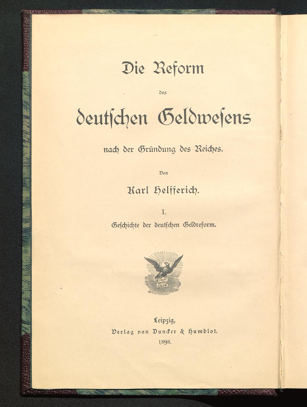 Die Reformdesdeutschen Geldwesensnach der Gründung des Reiches.vonRarl Helfferich.i.Geschichte der deutschen Geldreform.Leipzig ,Verlag von Duncker Humblot.5893.