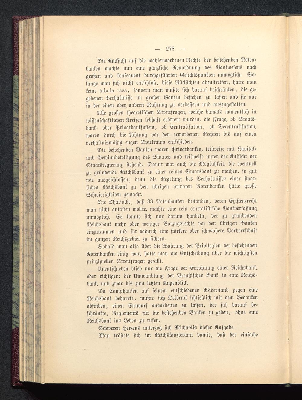 Unentschieden blieb nur die Frage der Errichtung einer Reichsbank,oder richtiger: der Umwandlung der Preußischen Bank in eine Reichs-bank, und zwar bis zum letzten Augenblick.