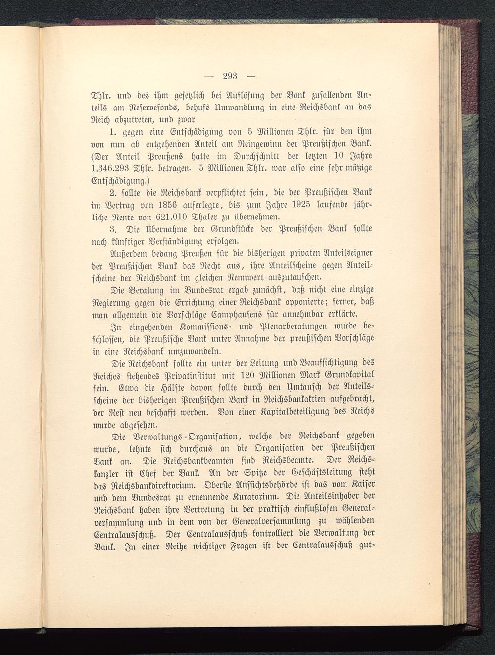 2. sollte die Reichsbank verpflichtet sein, die der Prenßischeu Bankim Vertrag von 1856 auferlegte, bis zum Jahre 1925 laufende jähr-liche Rente von 621.010 Thaler zu überuehmen.